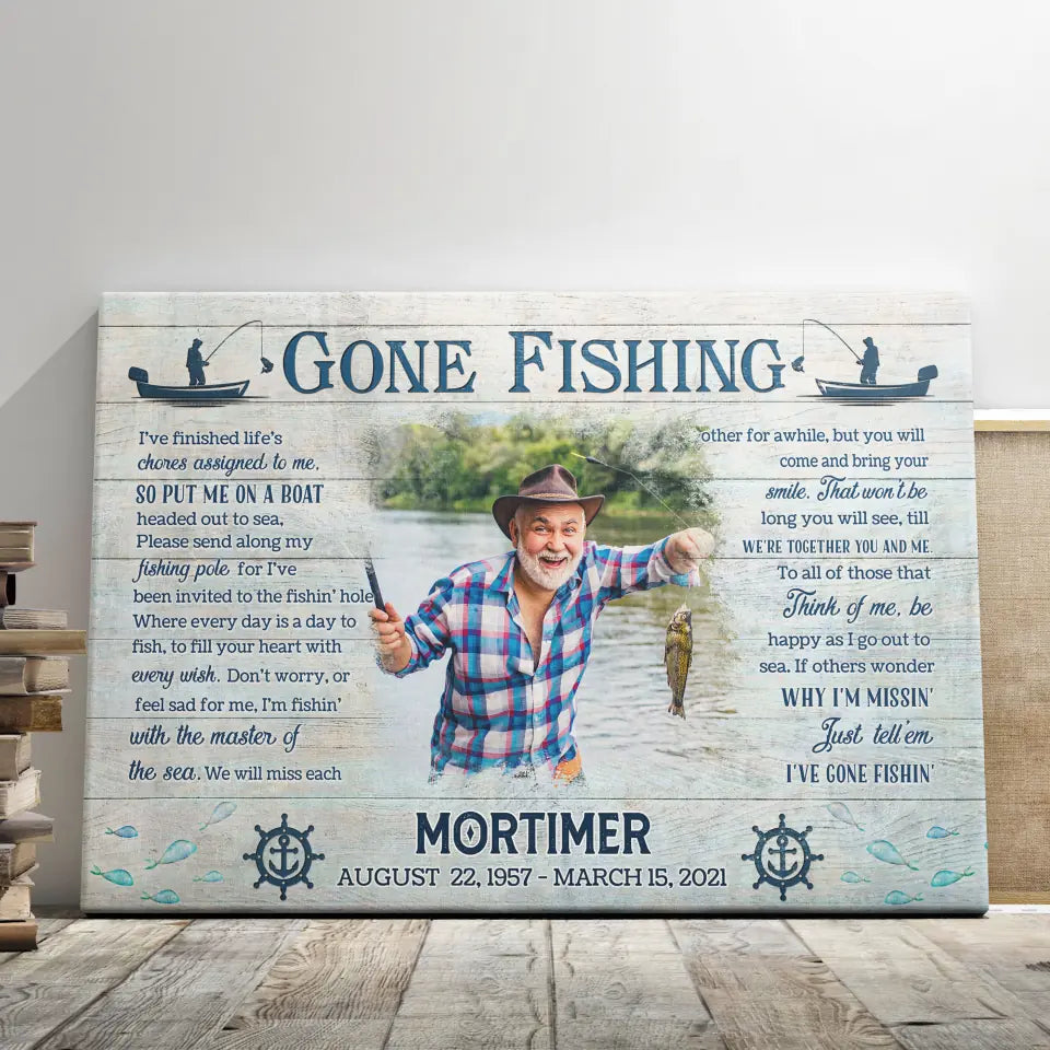 Personalized Canvas Prints, Custom Photo, Memorial Gifts, Sympathy Gifts, Loss Of Dad, Loss Of Grandpa, Rest In Peace Gone Fishing Dem Canvas