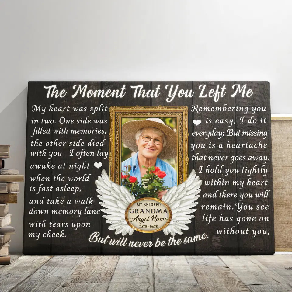 Personalized Canvas Prints, Custom Photo, Memorial Gifts, Sympathy Gifts, Loss Of Grandma, Angel Wings The Moment That You Left Me Dem Canvas