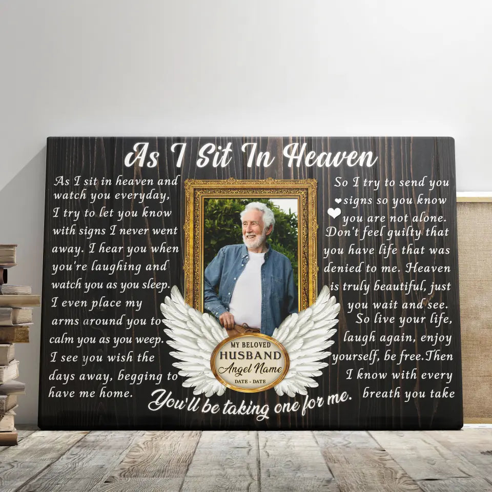 Personalized Canvas Prints, Custom Photo, Memorial Gifts, Sympathy Gifts, Loss Of Husband, Angel Wings As I Sit In Heaven Dem Canvas