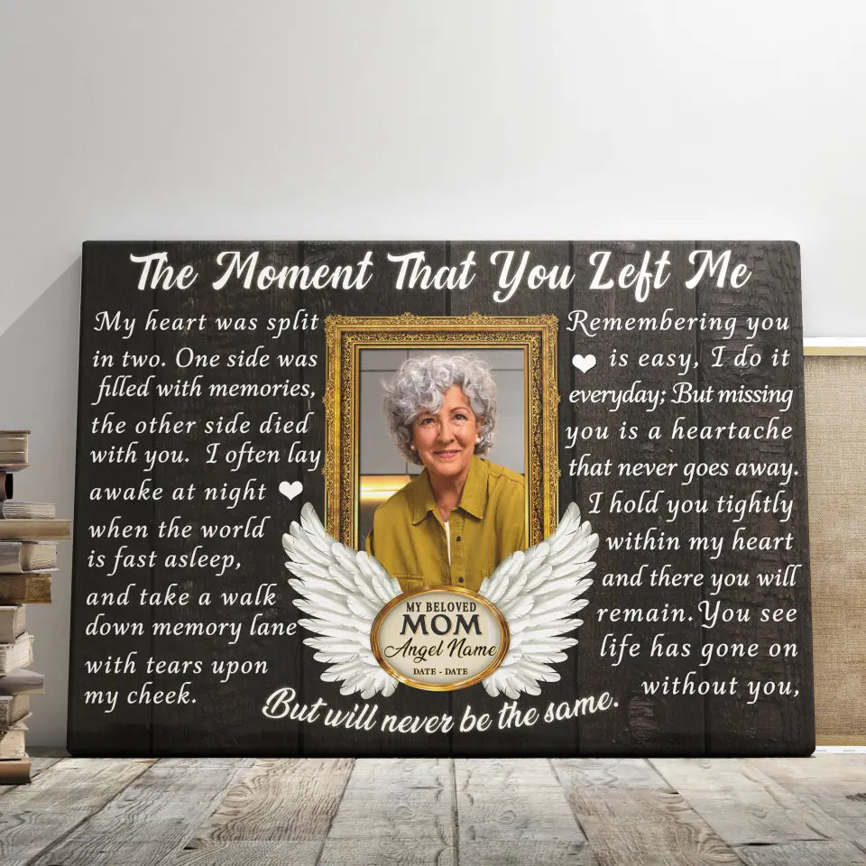 Personalized Canvas Prints, Custom Photo, Memorial Gifts, Sympathy Gifts, Loss Of Mom, Angel Wings The Moment That You Left Me Dem Canvas