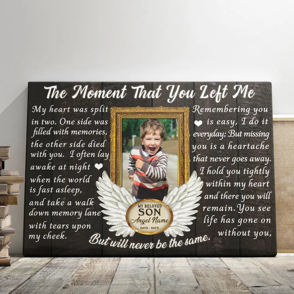 Personalized Canvas Prints, Custom Photo, Memorial Gifts, Sympathy Gifts, Loss Of Son, Angel Wings The Moment That You Left Me Dem Canvas