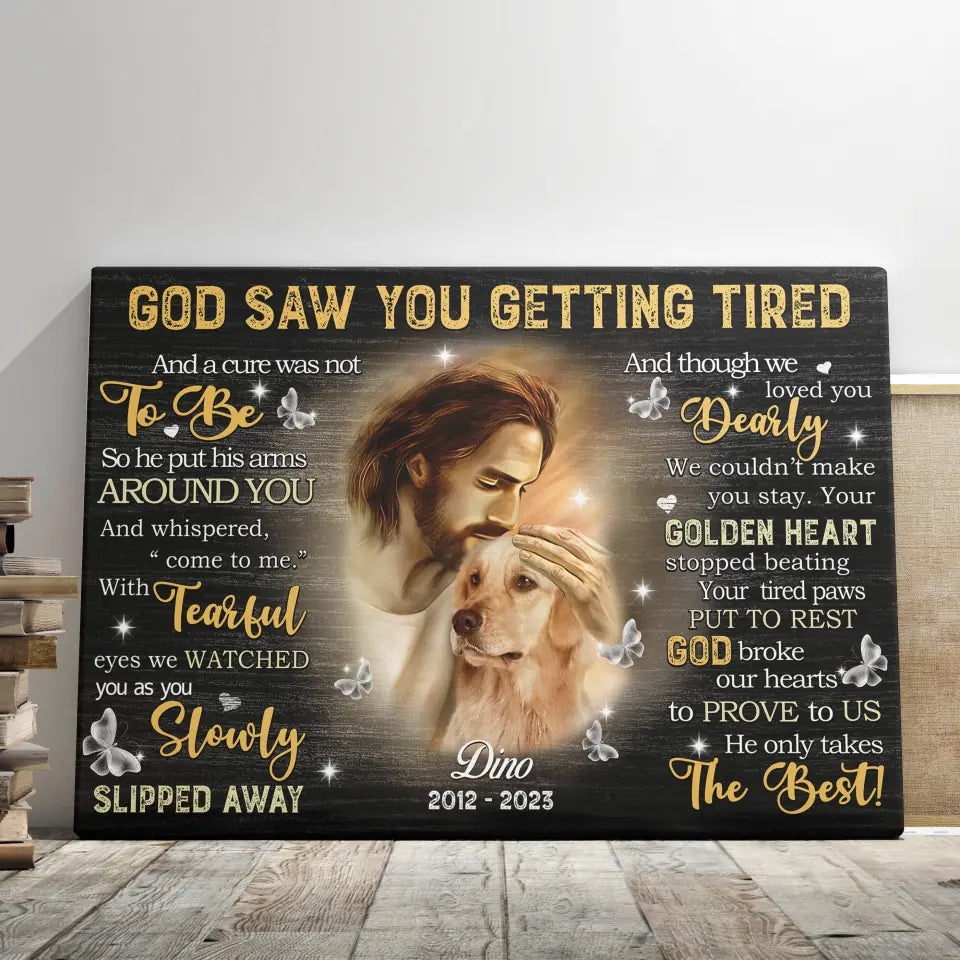 Personalized Canvas Prints Custom Photo, Remembrance Gifts, Memorial Gifts, Dog Condolence Gifts, God Saw You Are Getting Tired Dem Canvas