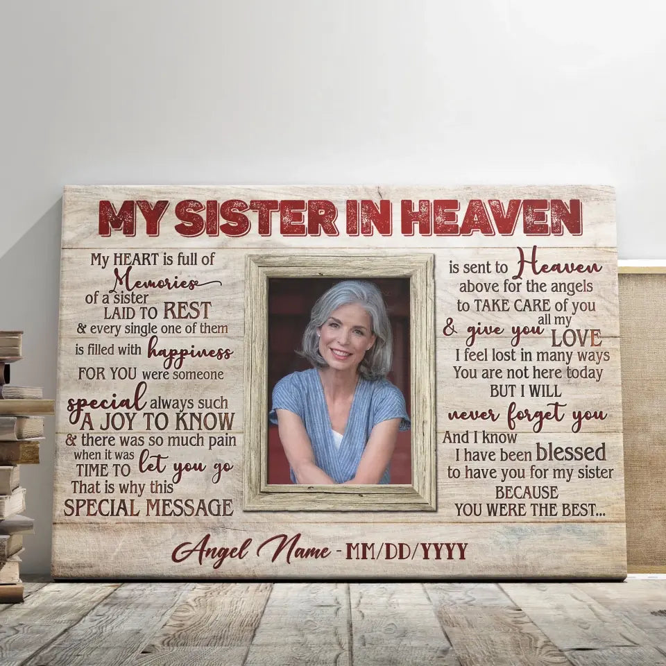 Personalized Canvas Prints, Custom Photo, Sympathy Gift, Memorial Gift, Memorial Gift Ideas For Loss Of Sister, Sister in Heaven Memorial Dem Canvas