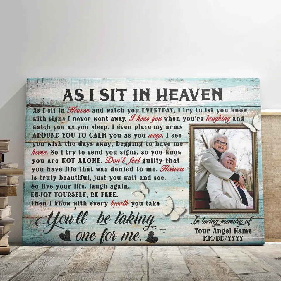 Personalized Canvas Prints Custom Photo, Sympathy Gifts, Memorial Gifts, Remembrance Gifts, Bereavement Gifts, As I Sit In Heaven Dem Canvas