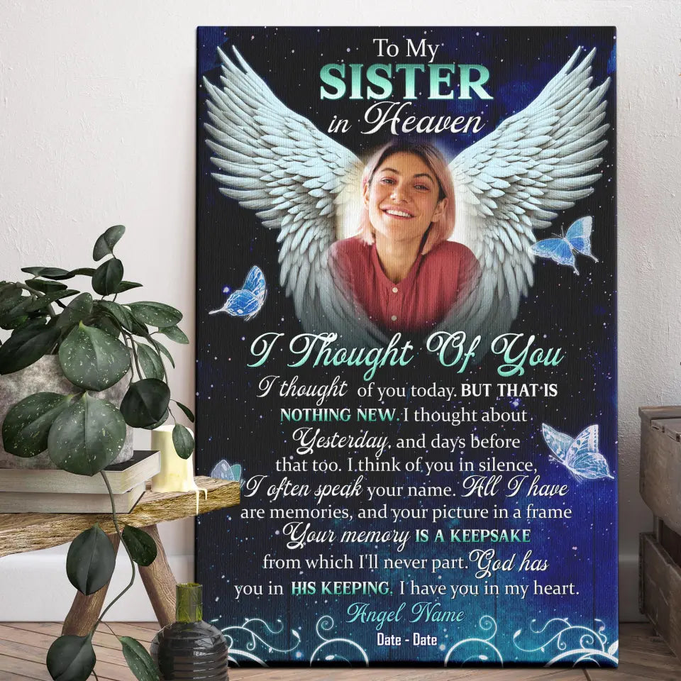 Personalized Canvas Prints, Custom Photo Sympathy Gifts, Remembrance Gifts, Bereavement Gifts, To My Sister In Heaven, I Thought Of You Dem Canvas