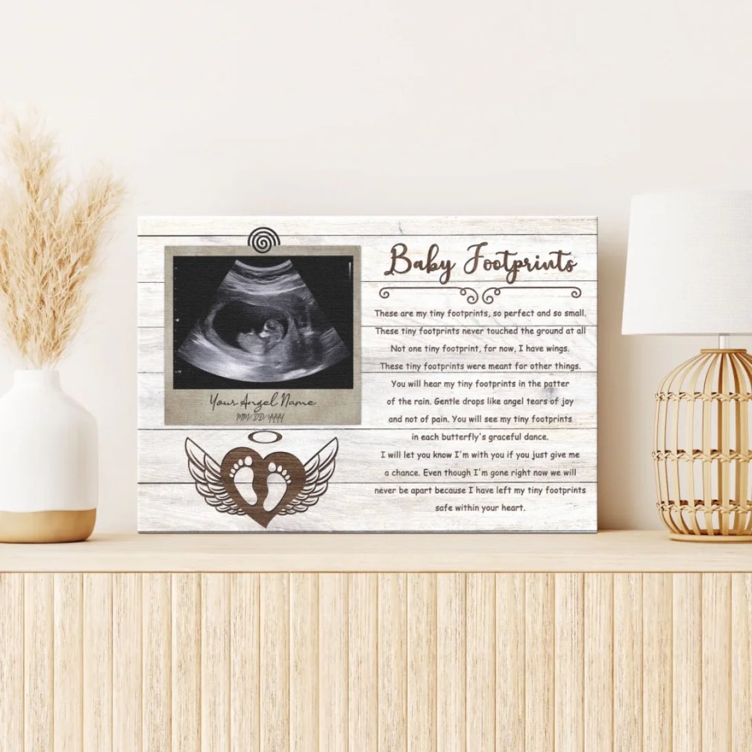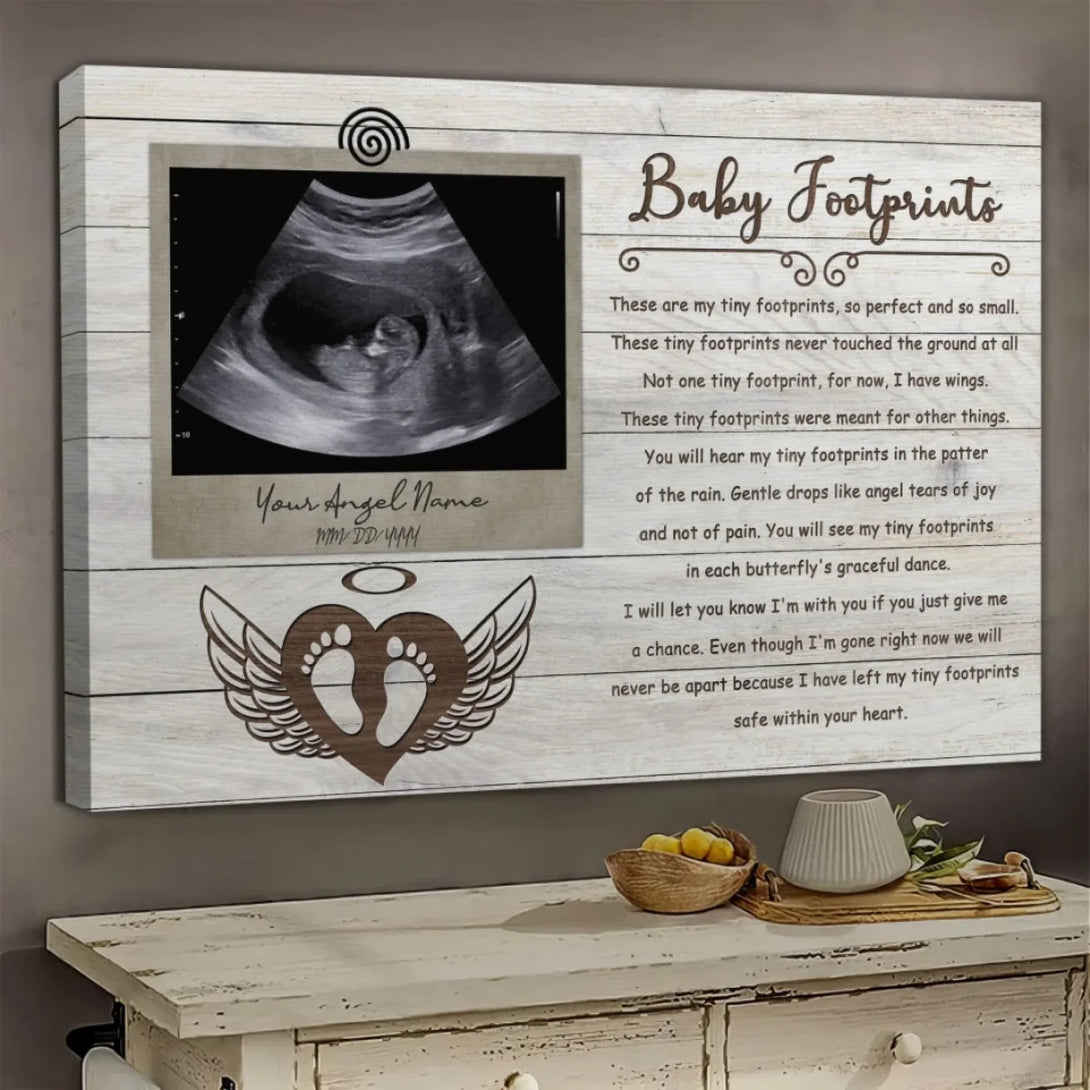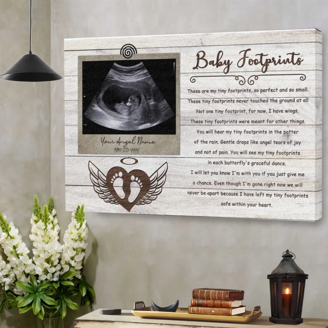 Personalized Canvas Prints, Custom Photo, Sympathy Gifts, Remembrance Gifts For Infant Loss Gift For Pregnancy Loss, Baby Footprints Dem Canvas