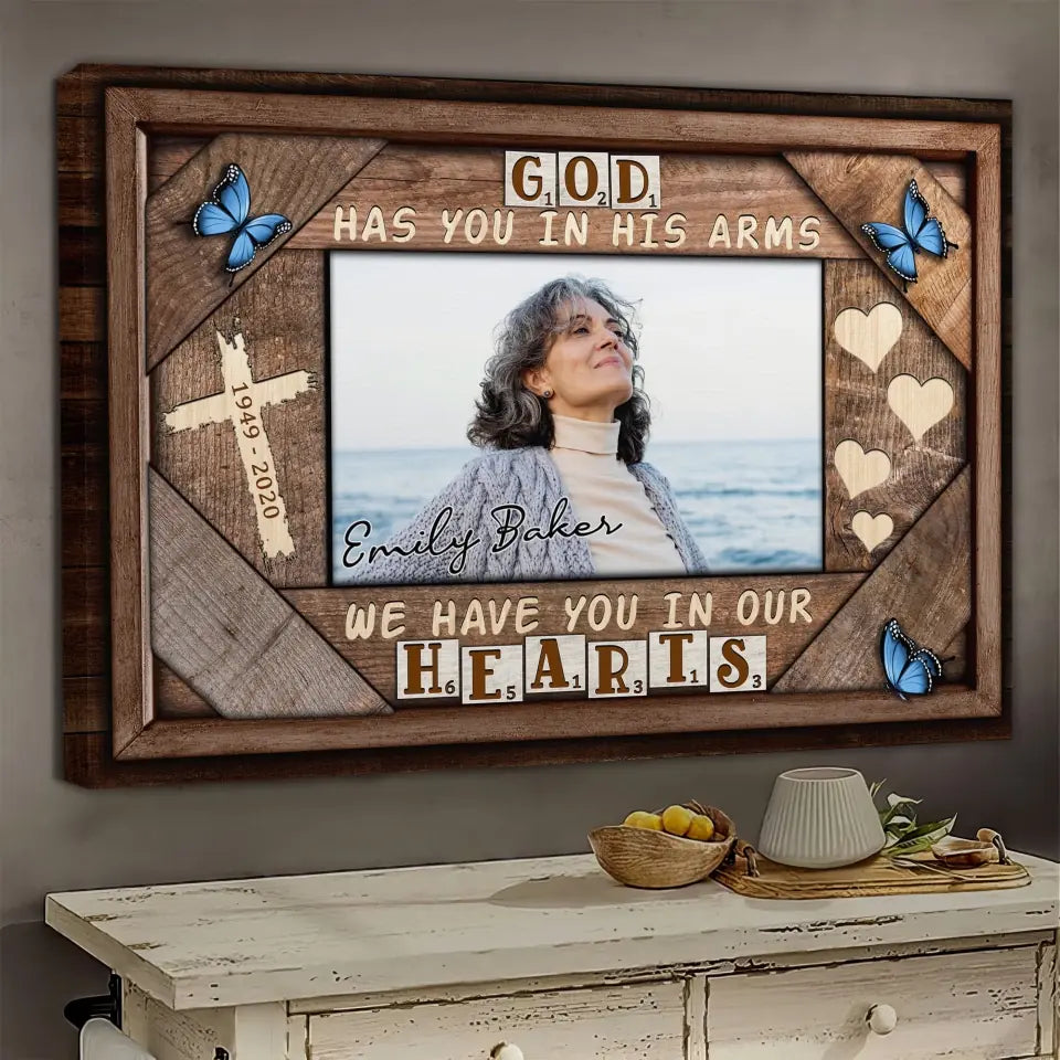 Personalized Canvas Prints Custom Photo, Sympathy Gifts, Remembrance, Memorial Gifts, Gifts, God Have You In His Arms Dem Canvas