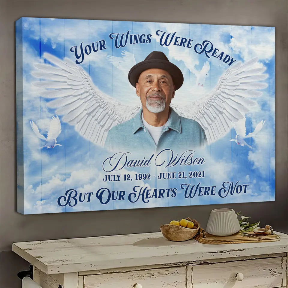 Personalized Canvas Prints, Custom Photos, Memorial Gift for Loss Father, Loss of Dad, Remembrance Gift, Your Wings Were Ready Dem Canvas