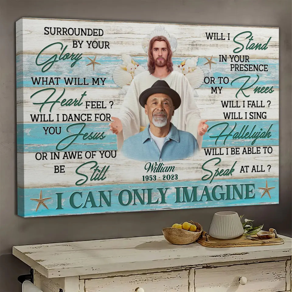 Personalized Canvas Prints, Custom Photos, Sympathy Gifts, Jesus Memorial Gift, Seashell Cross, Safe In God's Hand, I Can Only Imagine Dem Canvas