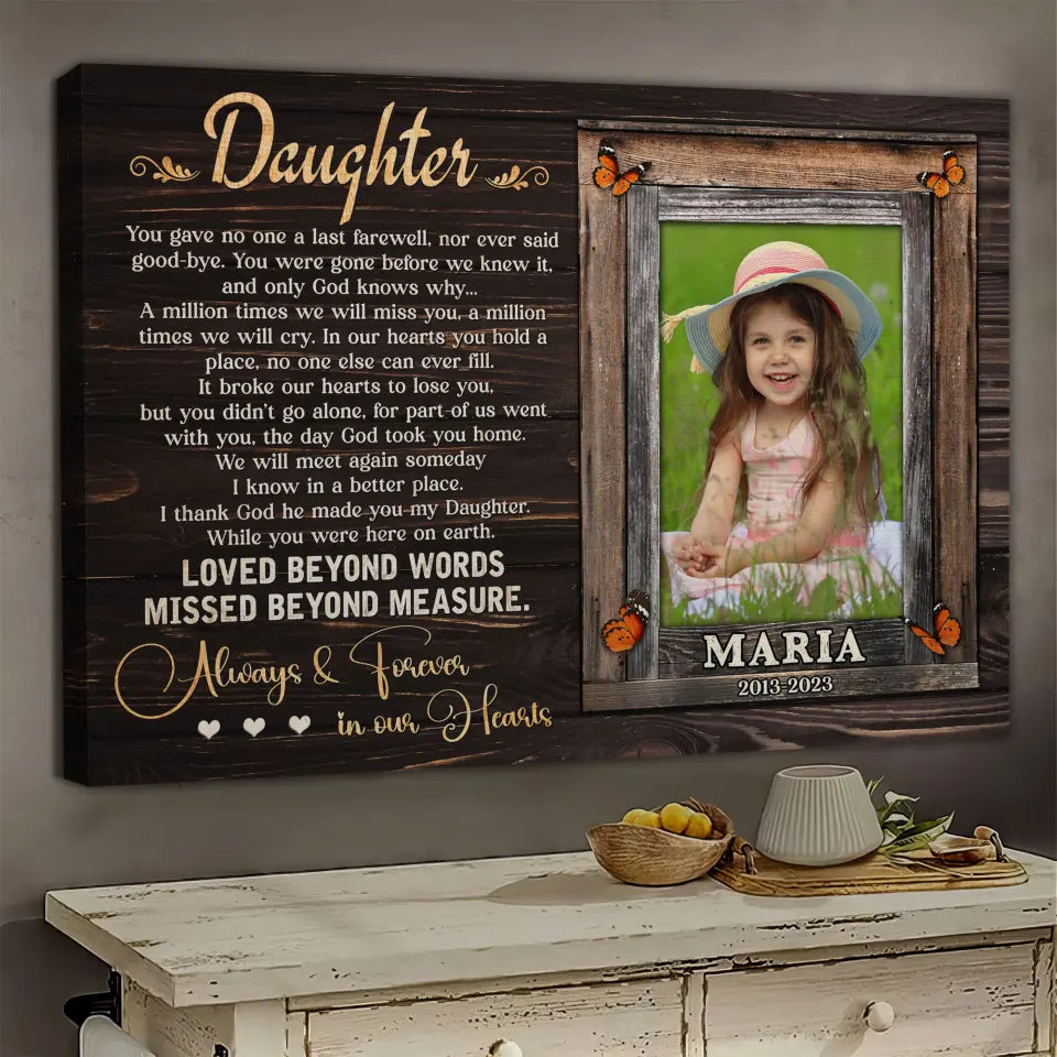 Personalized Canvas Prints, Memorial Gifts For Loss Of Daughter, Memorial Canvas for Daughter, Picture Frame for Lost Loved One Dem Canvas