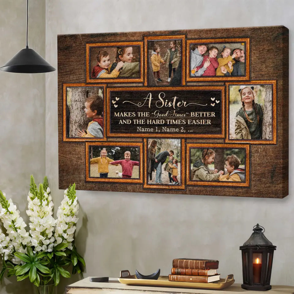 Personalized Canvas Prints, Upload Photo And Name, Love Sister, A Sister Makes The Good Time Better Dem Canvas