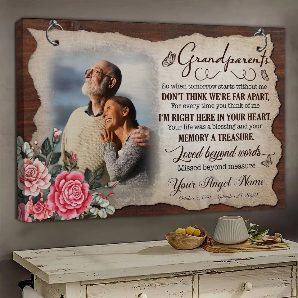Personalized Canvas Prints, Upload Photo, Memorial Gifts For Loss Of Grandparents, Memorial Gift, Love Beyond Words Missed Beyond Measure Dem Canvas