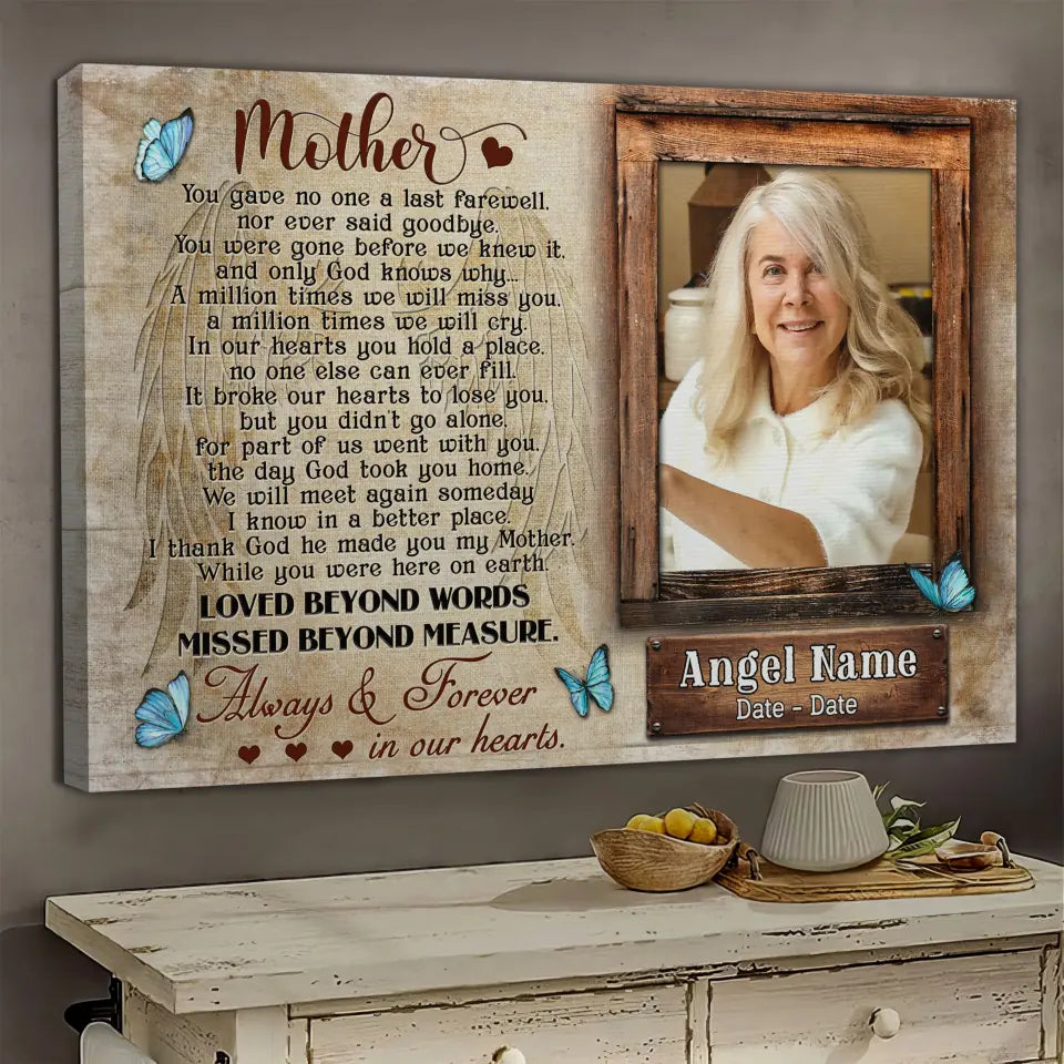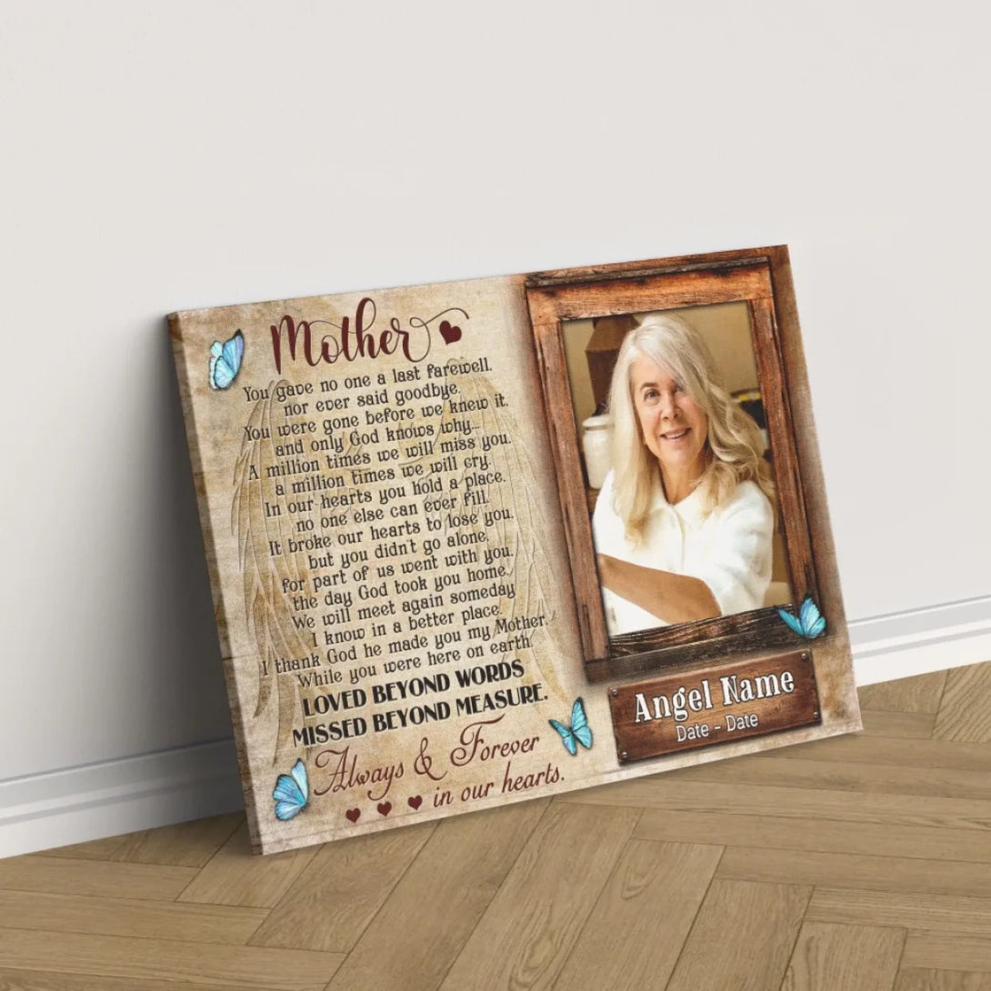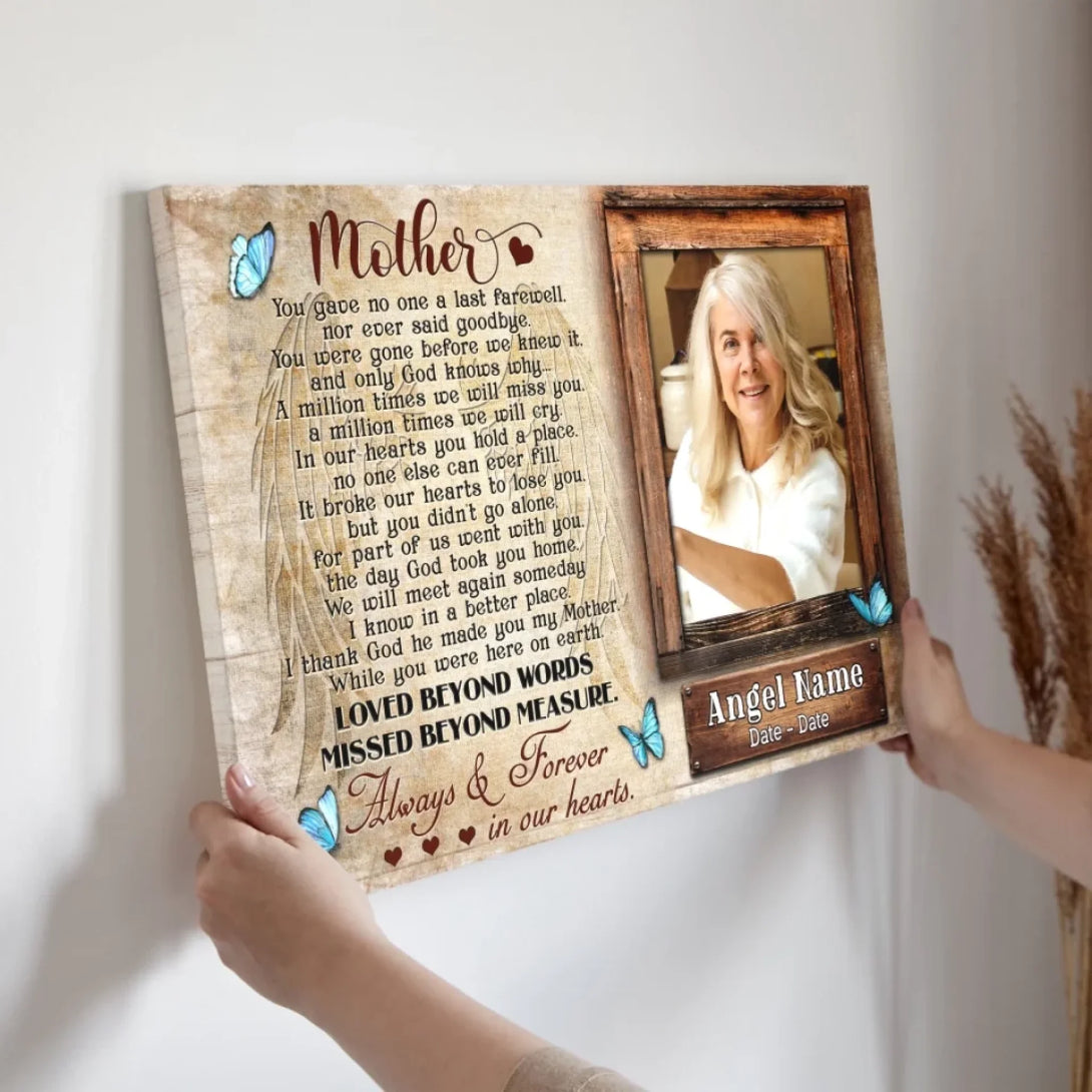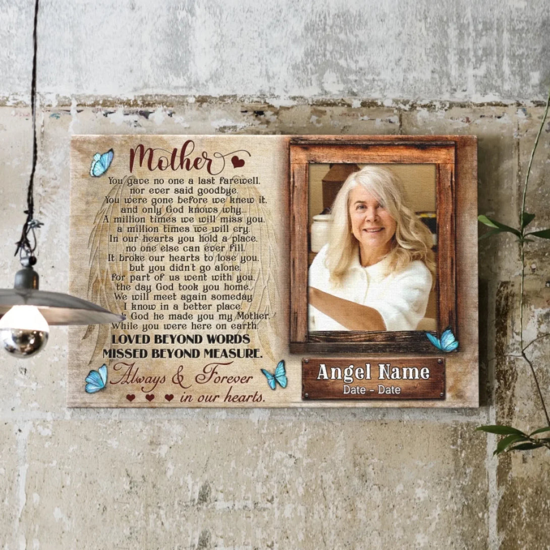 Personalized Canvas Prints, Upload Photo And Name, Memorial Gifts For Loss Of Mother, Memorial Gift, Always And Forever In Our Hearts Dem Canvas