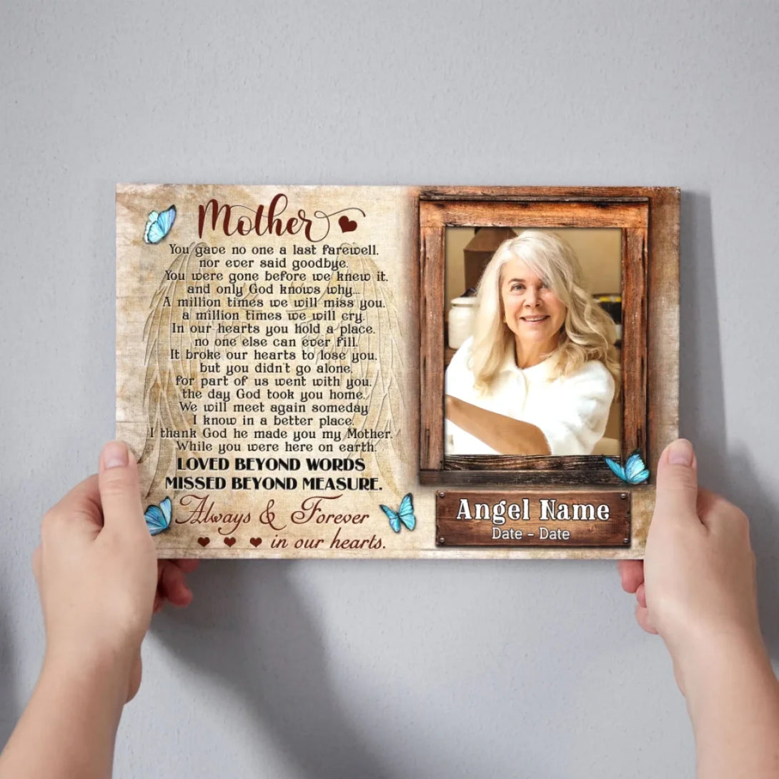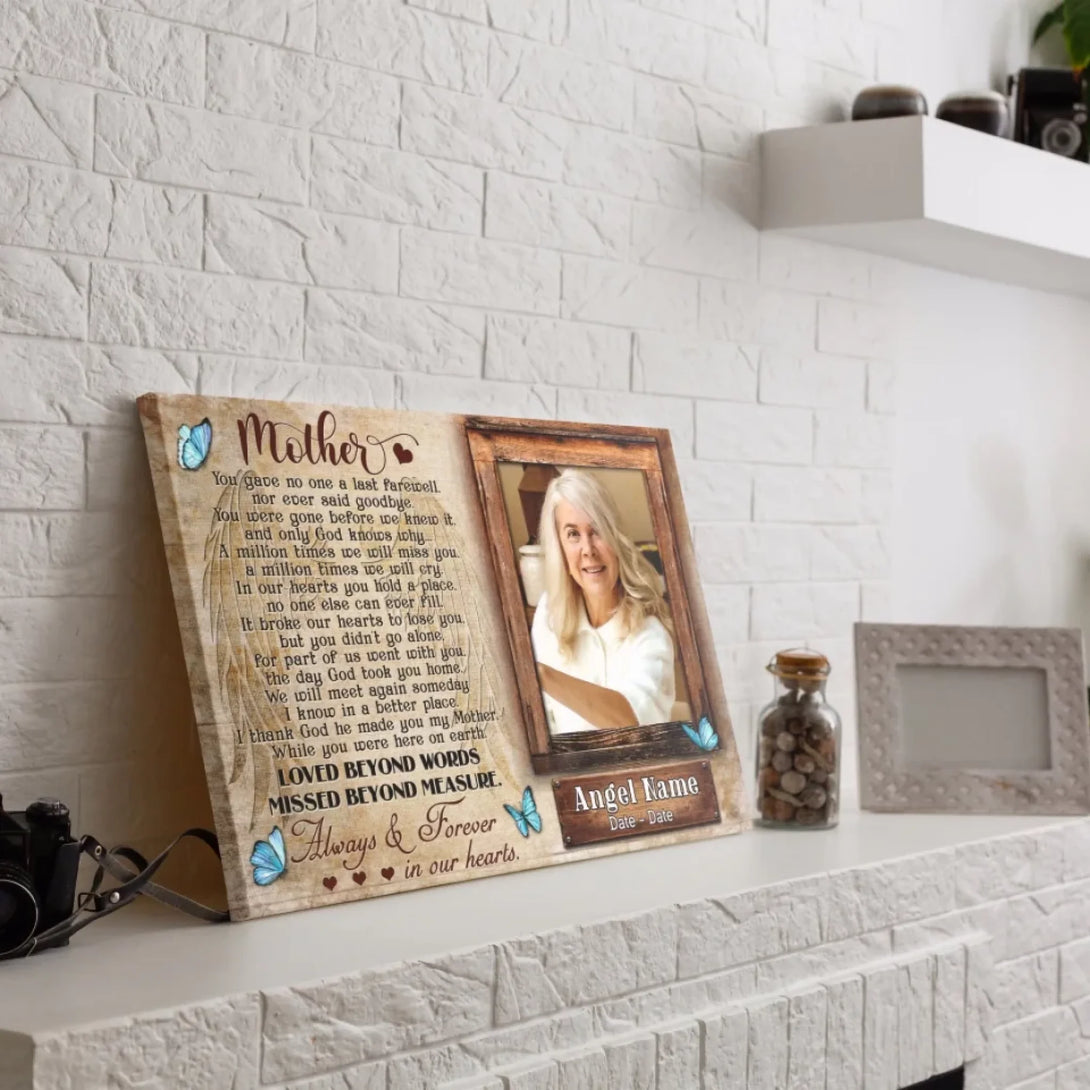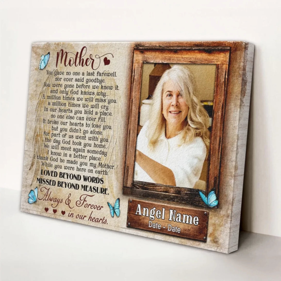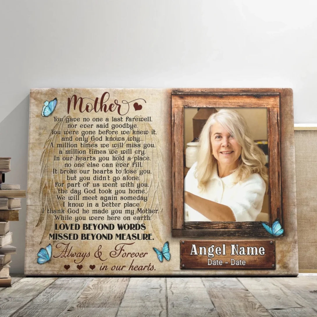 Personalized Canvas Prints, Upload Photo And Name, Memorial Gifts For Loss Of Mother, Memorial Gift, Always And Forever In Our Hearts Dem Canvas