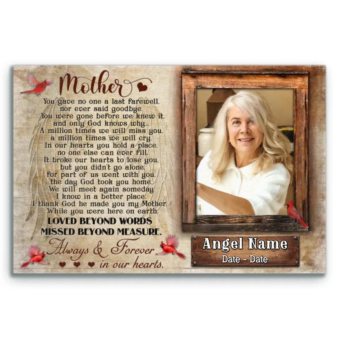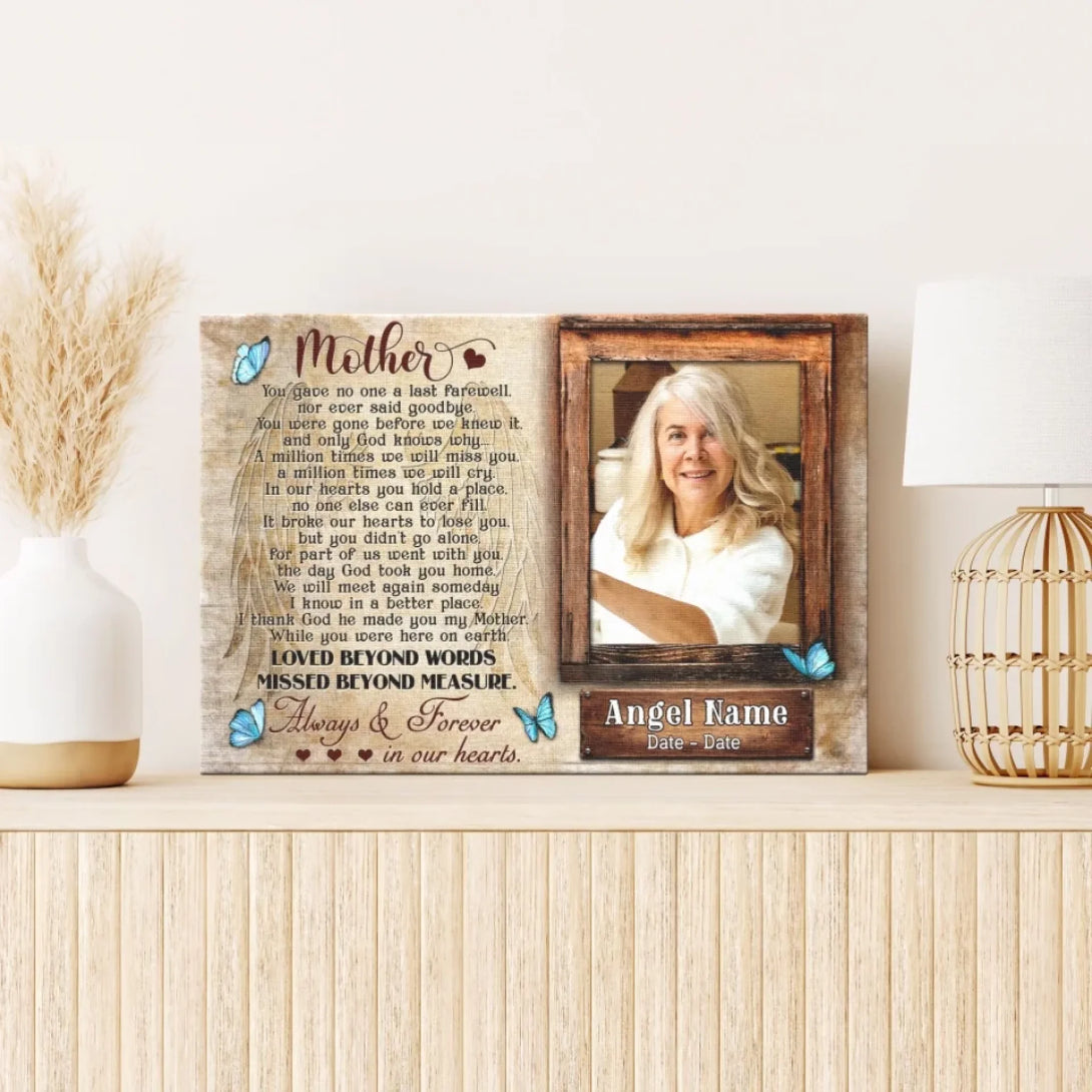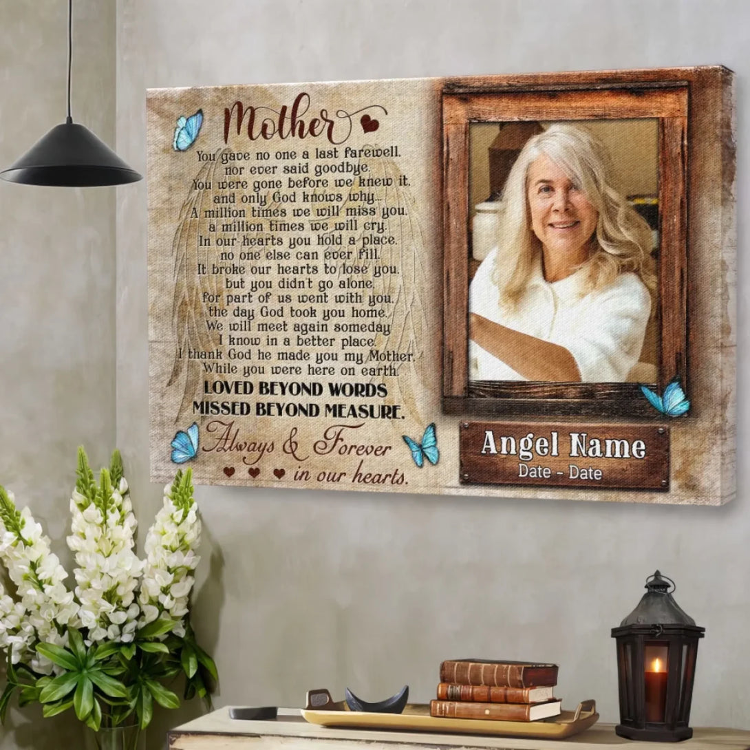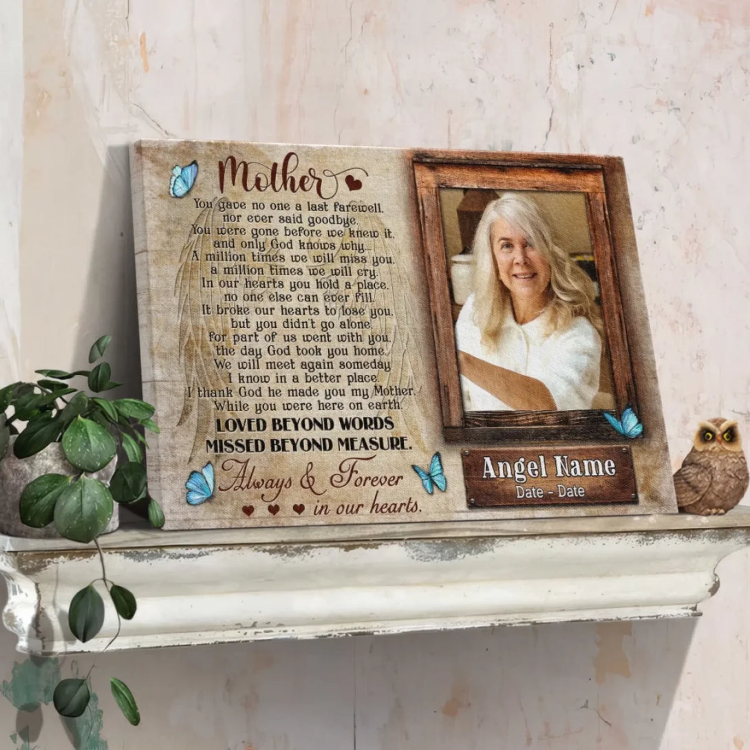 Personalized Canvas Prints, Upload Photo And Name, Memorial Gifts For Loss Of Mother, Memorial Gift, Always And Forever In Our Hearts Dem Canvas