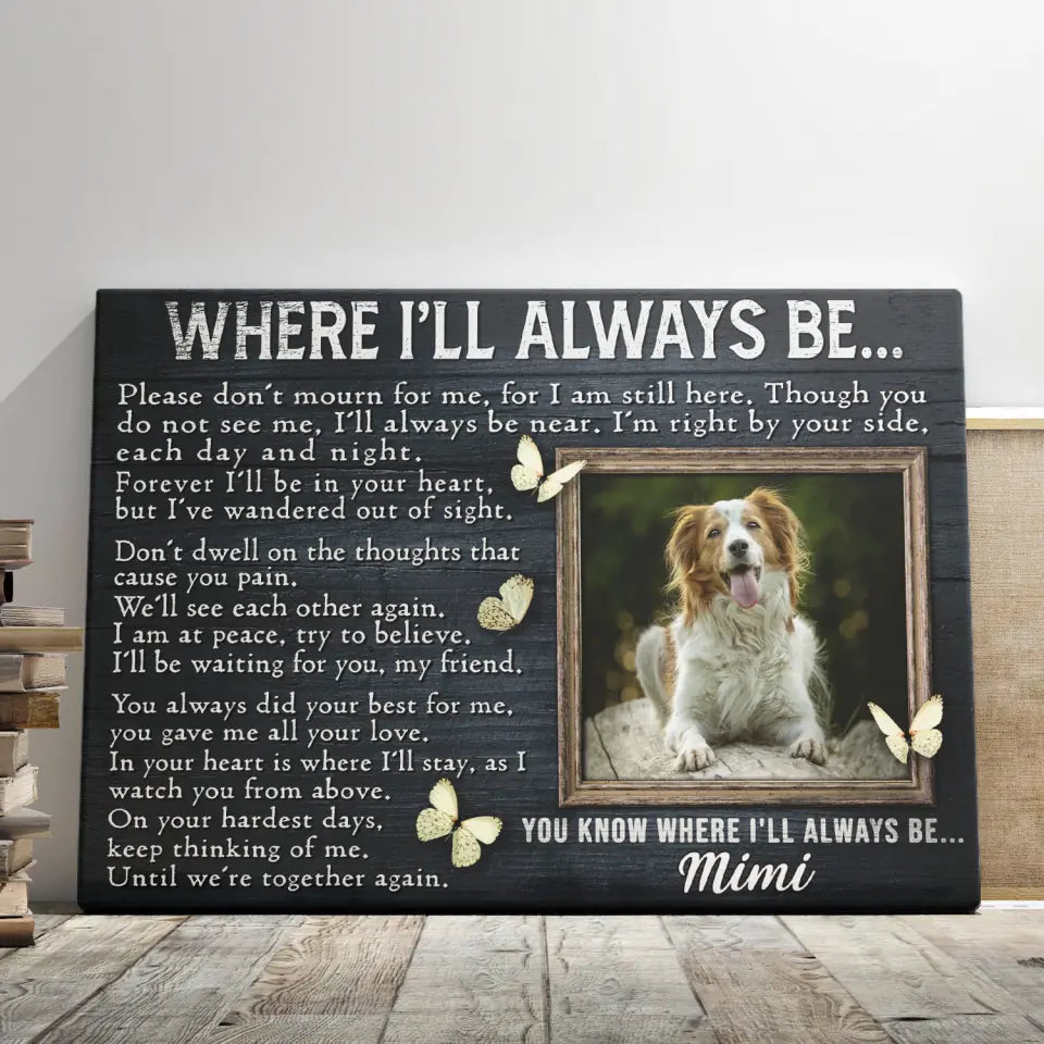 Personalized Dog Memorial Gifts - Personalized Canvas Prints - Where I'll Always Be..., Memorial Pet, Loss Of Dog Lover Gifts