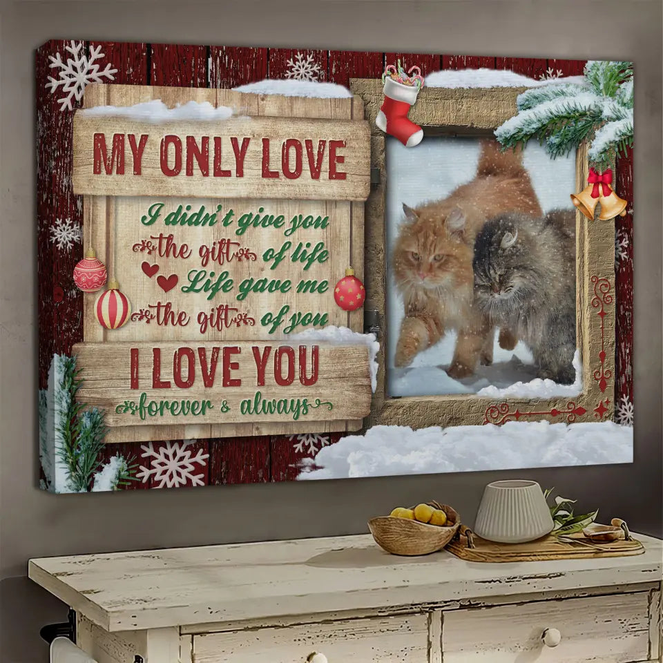 Personalized Photo Canvas Prints, Custom Photo, Christmas theme, Cats by the window, I love you forever and always Dem Canvas