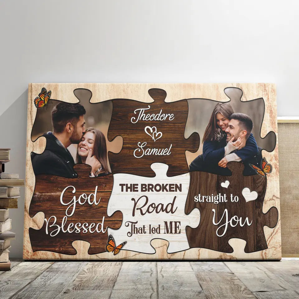 Personalized Photo Canvas Prints, Custom Photo, Couples Gifts For Him For Her, Wedding Gifts, Engagement Couple Gifts, Puzzle Piece Frame Dem Canvas