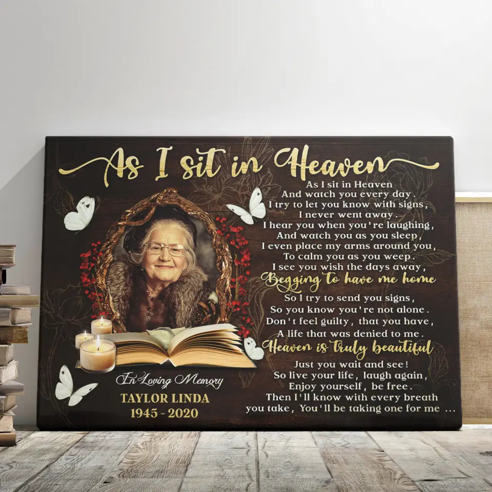 Personalized Photo Canvas Prints, Custom Photo, Memorial Gifts, Sympathy Gifts, Remembrance Gifts, As I Sit In Heaven Dem Canvas