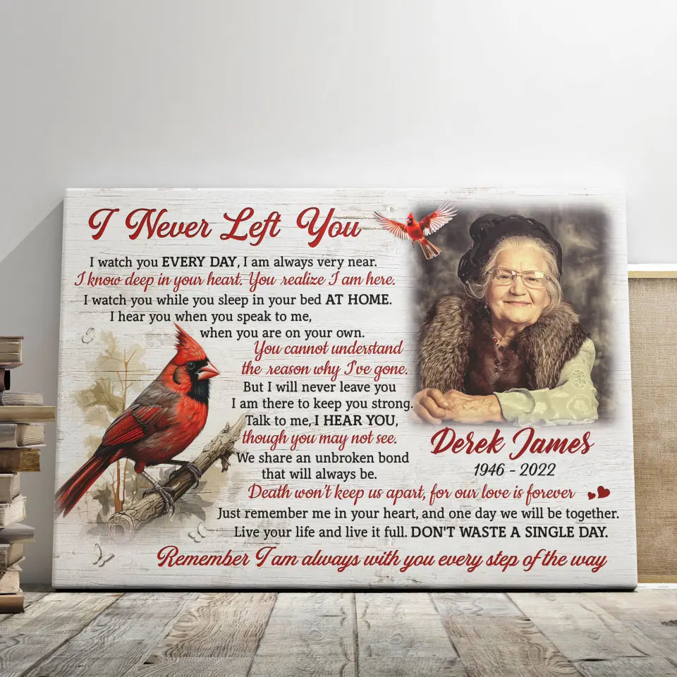 Personalized Photo Canvas Prints, Custom Photo, Memorial Gifts, Sympathy Gifts, Remembrance Gifts, Cardinalis I Never Left You Dem Canvas