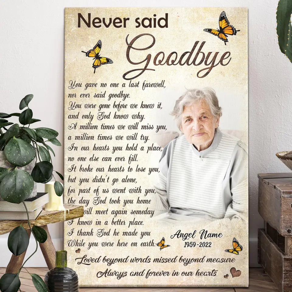 Personalized Photo Canvas Prints, Custom Photo, Memorial Gifts, Sympathy Gifts, Remembrance Gifts, Never Said Goodbye Dem Canvas