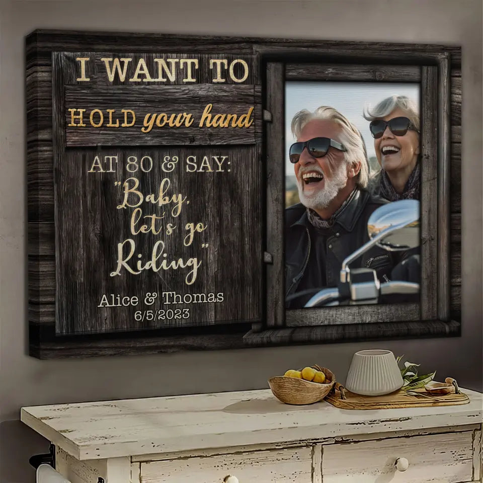Personalized Photo Canvas Prints, Custom Photo, Motorcycle Couple Gift, Hold Your Hand Motorcyclist Canvas Art, Motorbike Lover Gift Dem Canvas