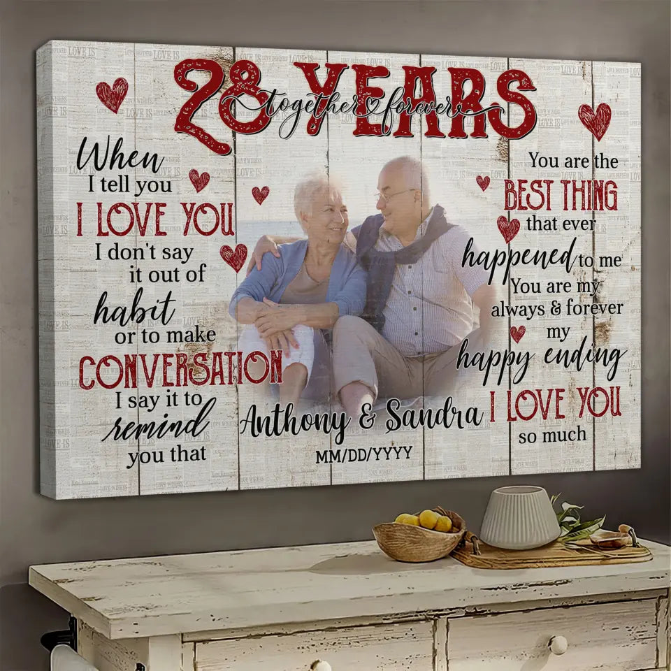 Personalized Photo Canvas Prints, Gifts For Couples, Happy 28th Anniversary Gift For Husband And Wife, Together And Forever When I Tell You Dem Canvas