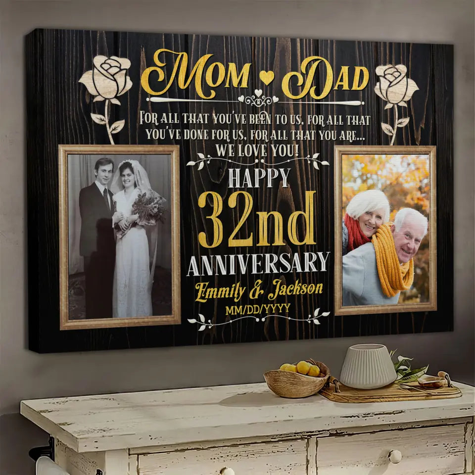 Personalized Photo Canvas Prints, Gifts For Couples, Wedding Anniversary, Gift For Couples, Mom And Dad Happy 32nd Anniversary Dem Canvas