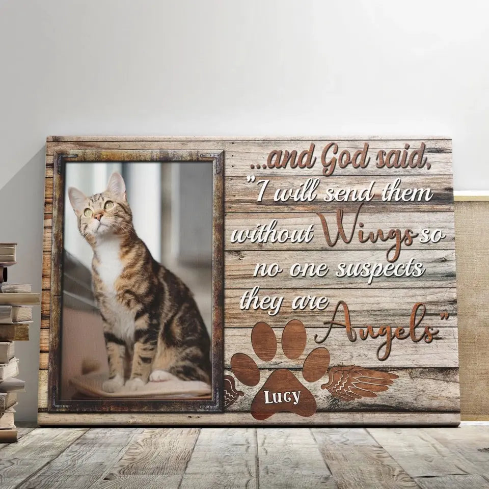 Personalized Photo Canvas Prints, Pet Memorial Gifts, Cat Lover Gifts, God Said I Will Send Them Without Wings Dem Canvas