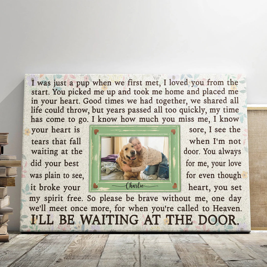Pet Personalized Canvas Prints - Custom Photo & Text - 5 Sizes - Dog Loss Gifts, Pet Memorial Gifts, Dog Sympathy, Waiting At The Door - Dem Canvas