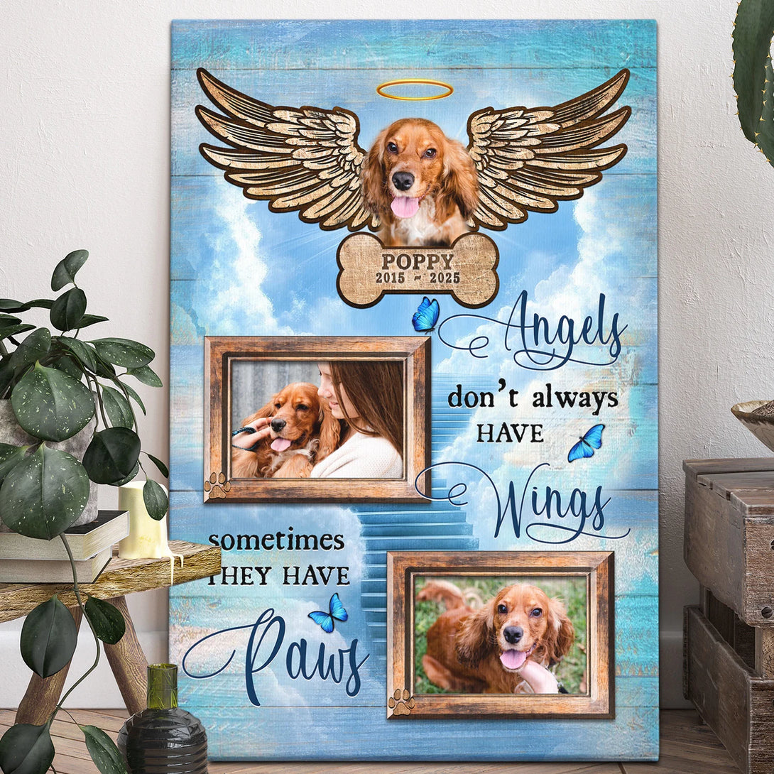 Pet Personalized Canvas Prints - Custom Photo & Text - 5 Sizes - Pet Loss, Angels Don't Always Have Wings Sometimes They Have Paws - Dem Canvas