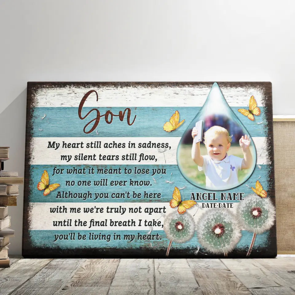 Son Memorial Personalized Canvas Prints - Custom Clipart, Photo & Text - 5 Sizes - Memorial Canvas For Son, Forever In My Heart - Dem Canvas